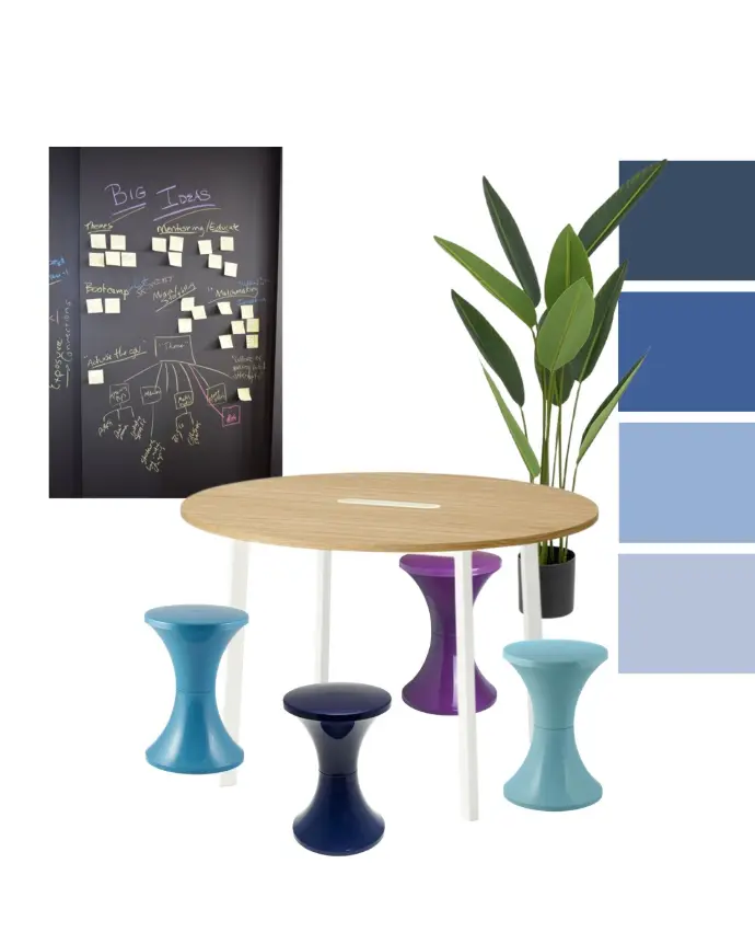 Un mix d'assise haute et classique permet à chacun de trouver sa place.